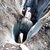 В самом начале ледника есть большой колодец во льду. Внутри камень.