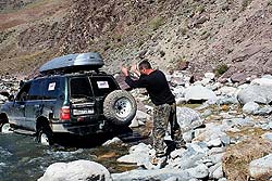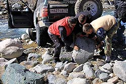Сейчас уже можно улыбнуться: наши монголы, имея опыт международных инструкторов, впервые участвовали в подобной экспедиции на автомобилях. Сначала ребята не могли понять: зачем надо пересекать этот хребет, если можно его обогнуть чуть левее и взяв перевал помягче. Однако, посмотрев на «Больших Братьев», которые вопреки здравому смыслу, корячились через камни нехоженых рек и шли по маршруту, проложенному на карте, быстро втянулись в азарт первооткрывателей. Справедливости ради, нужно сказать, что они так и не отдали нам право «первой ночи» - почти весь маршрут монгольский экипаж был ведущим.