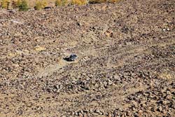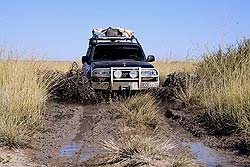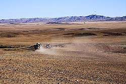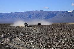 В большинстве мест, где лежит голая каменистая степь, возможно с достаточно большой скоростью двигаться в любом направлении без дорог, но всегда разумнее придерживаться автомобильного следа. Наш экипаж, забывший эту науку, поплатились разбитой подвеской, а все мы потеряли время на её ремонт.