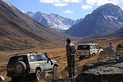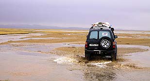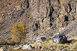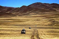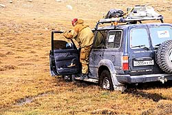 Но стоит только углубиться в горы, и степное раздолье вспоминается, как подарок судьбы. На каменистых участках скорость падает до 5-7 км/час и на лицах вместо улыбок появляется озабоченность. В любое время года главным препятствием является горный перевал, а поздней осенью они осложнены еще не промерзшей горной тундрой, где не спасает никакая резина.