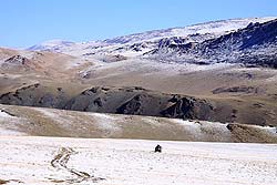 И, главное никто не знал, сколько еще «протянут» механизмы, испытавшие колоссальную нагрузку оставленных позади непростых километров. Быть может, железо дотерпит до цивилизованной (ха, оптимисты!) мастерской, а может за ближней горой автомобиль встанет замертво? Имело место и беспокойство за выбор осеннего межсезонья: первый снег, конечно, не представлял серьёзной угрозы, но вносил некоторую долю неопределенности. А ведь для эвакуации экипажа может потребоваться не одна неделя, а там и зима нагрянет, в горах это запросто... Решаясь на штурм горного хребта, нужно принимать во внимание, что в Западной Монголии отсутствуют службы спасения и в случае чрезвычайного происшествия можно рассчитывать только на свои силы.