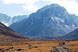 Руслом реки мы добрались почти до подошвы начинающихся ледников, где можно уверенно планировать установку базового лагеря будущих восходителей.