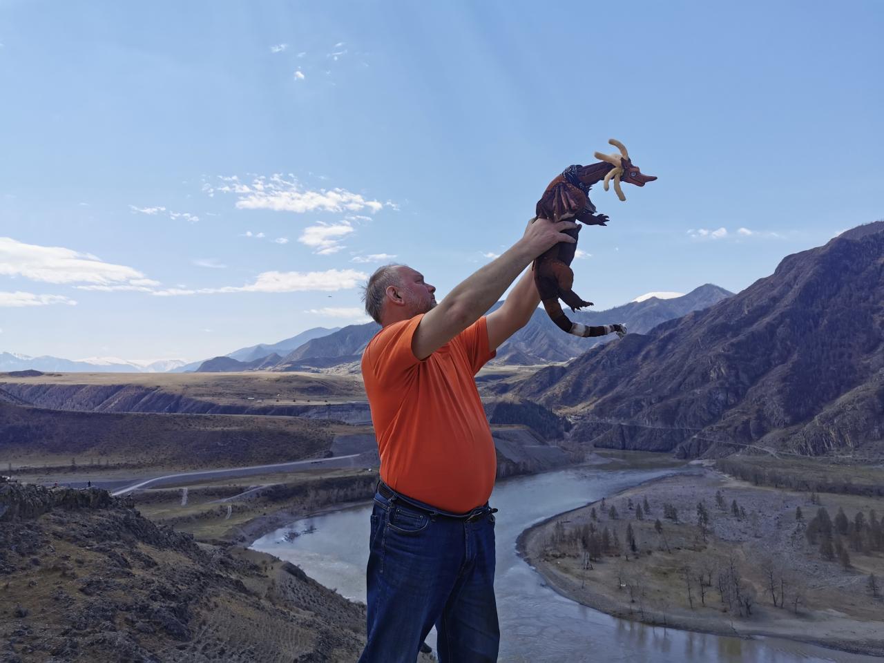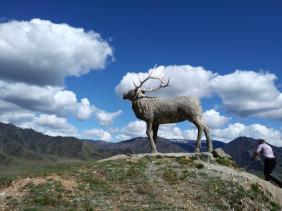 Олень на смотровой площадке за Ороктойским мостом с чудесным видом на долину р. Катунь