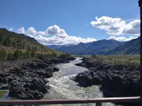 Экскурсия по Чемальскому району к острову Патмос, переход по живописной «Козьей тропе» вдоль высокого обрывистого берега реки Катуни до места впадения реки Чемал в Катунь и к Чемальской ГЭС. Далее проедем до Ороктойского моста в самом узком месте реки Катунь.