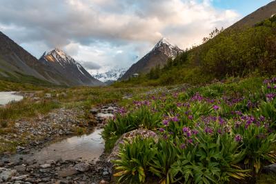 Сегодня совершим радиальный выход в заоблачную Долину Семи озер (высота 2600м). Почему заоблачную? Потому что она находится уже выше границы формирования облаков и именно здесь вы сможете увидеть, как облака не спускаются, а поднимаются снизу! Среди альпийских лугов, среди горных вершин расположились как минимум семь разноцветных горных озёр. Дорога к ним проходит мимо ледника Ак-оюк, зрелищно спускающегося с горного массива в долину. Если погода позволит, то в озерах можно будет искупаться. Если нет – тогда просто отдыхать, фотографировать потрясающие виды, увидеть плантации алтайского хлопка или Пушицы. К вечеру возвращаемся в базовый лагерь.