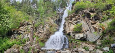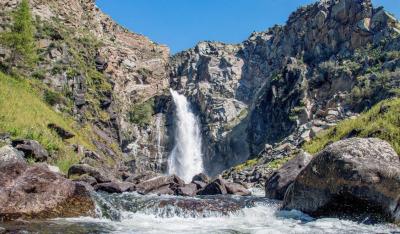 Далее едем по величественному каньону, с гор падают водопады, а река зеленого цвета бежит лентой к Телецкому озеру. По пути до базы нам откроются КАРАСУ, УТУ-КАЯ, ТУДАНСКИЕ ВОДОПАДЫ.