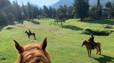 Прекрасная прогулка верхом на лошади среди гор, лесов и лугов! Если у вас нету навыков верховой езды, то вам проведут обучение, для туристов специально подбирают спокойных коней