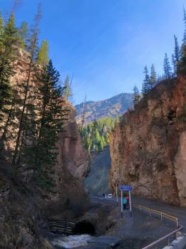 каменные ворота АЙРЫ-ТАШ — вокруг дороги раскинулись две огромные скалы, высотой около 18 метров. Раньше это была одна гора, но для строительства тракта часть скалы взорвали и сделали узкий проезд — теперь это фантастическое место, которое точно стоит увидеть.