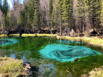 ГЕЙЗЕРОВОЕ ОЗЕРО, которое спрятано в лесу. Оно же Голубое, Серебряное, Гейзерное – названий много, но озеро одно. Голубая глина разрисовала дно причудливыми фигурами, и они постоянно меняются, в тот момент, когда начинают бить подземные ключи! Много легенд связано с этим местом, говорят, что и зимой вода тут не замерзает!