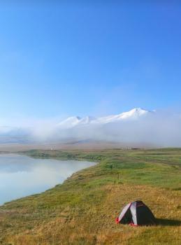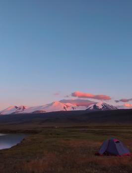 Порой прямо на пути нам будут встречаться огромные валуны, а уже сверху (2 906 м) откроются прекрасные виды на плато Укок. Лагерь разобьём на берегу озера Гусиное, в окружении снежных гор. Отражение белых вершин Табын-Богдо-Ола в воде – находка для фотографов и эстетов! Желающие могут прогуляться до отрогов хребта и сделать памятные фото в лучах заходящего солнца.