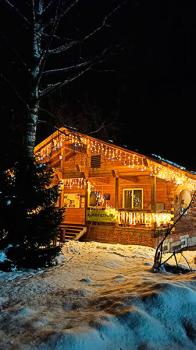Вечером нас ждет баня — как раз то, что нужно после насыщенного дня. Мышцы расслабляются, усталость моментально проходит — это лучший вариант горнолыжного вечера. Прогревшись, можно прыгать в сугробы, а потом снова заходить в баню и париться с веником. Какое же это удовольствие!
