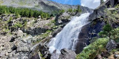 Водопад Куйгук оооочень привлекательный! Он рождается среди крупных камней и одним мощным каскадом спускается в долину. Водопад очень мощный и полноводный.