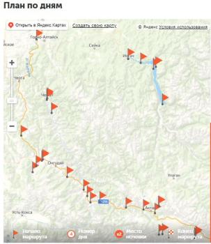 - поездка на Акташский ретранслятор, на озеро Горных духов и к Чуйским меандрам