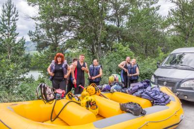 сплав по Катуни. Сначала наденем экипировку, послушаем инструктаж, поучимся работать веслом и слушать команды капитана. Потом пронесемся на рафтах по реке, через брызги валов, быстрины и другие водные препятствия. Зарядимся адреналином и драйвом! Гордые собой выходим на берег и переодеваемся в сухую одежду. Вечером можем погулять по окрестностям, или отдохнуть после пережитого.