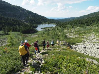 После завтрака и утренней зарядки отправляемся гулять без рюкзаков на озёра. Постараемся посетить их все, зайдём на смотровые площадки, чтобы полюбоваться панорамой Каракол и сделать лучшие фотографии. Затем отправимся штурмовать перевал «Багаташ» (высота 2100 м). Подъём будет несложным, а с перевала можно увидеть большую часть Катунского и Северо-Чуйского горных хребтов со снежными шапками, которые не тают даже летом. Помимо оригинального названия («Багаташ» в переводе с алтайского значит «каменная лягушка»), место известно своей долиной туров. Традиция складывать на перевале пирамиды из камней появилась среди туристов ещё во времена СССР. Сейчас здесь встречаются каменные изваяния самой причудливой формы. Мы также посетим «Замок Горных Духов» – скальный массив, где, по преданиям, живут незримые хранители Алтая. На ночёвку возвращаемся в лагерь на озере.