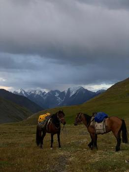 Переезд на авто к месту начала конного похода. Сборы, инструктаж по технике безопасности. Распределение коней, седловка, подгонка снаряжения. Распределение продуктов по конным суминам (арчимакам). Выход на маршрут. Ночь в палатках на перевале Орой, ужин на костре.