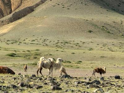 дикими верблюдами, свободно пасущимимся на просторах Чуйской степи.