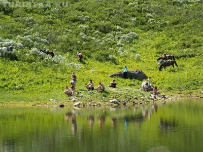 Располагаемся на ночевку (в палатках или заранее заказанных домиках), отдыхаем, готовимся к походу.