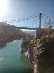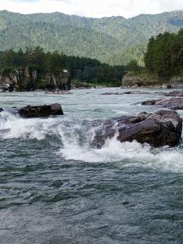 Камышлинский водопад (пешком через подвесной мост или на моторках). Доставка на Камышлинский водопад водным путём по реке Катунь на катерах, при этом туристы испытывают неописуемый восторг от экстремального вождения катеров профессиональными капитанами. Камышленский водопад впечатляет своей мощью и окружающей его девственной природой.