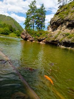 Форелевое озеро в 10 км от п. Чемал: происхождение естественным путём и облагороженное человеком, эффектное кормление рыб с рук, изумительные фото на фоне каменной черепахи. В 14-00 обед, отдых 1 час.