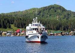 - Экскурсия на теплоходе "Пионере Алтая" будет комфортна в любую погоду - теплоход оснащен застекленными пассажирскими салонами.