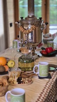 Каждому гостю — фирменные алтайские угощения: натуральный мёд и ароматный чай.