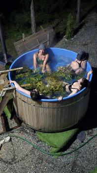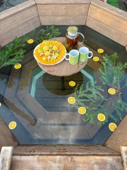 - ️Сибирский чан с подсветкой — горячая вода под открытым небом, звёзды и пар,
